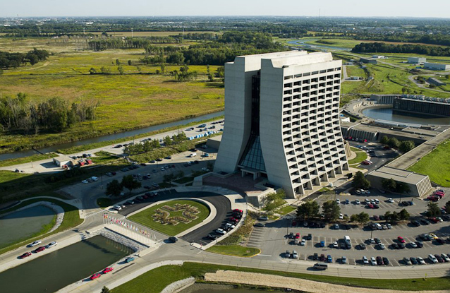The most impressive feature of Fermilab at ground level is the administration building, named after the first director, Robert Wilson. The design and construction were performed by a consortium of four firms called DUSAF. https://history.fnal.gov/criers/7-11-1974.pdf