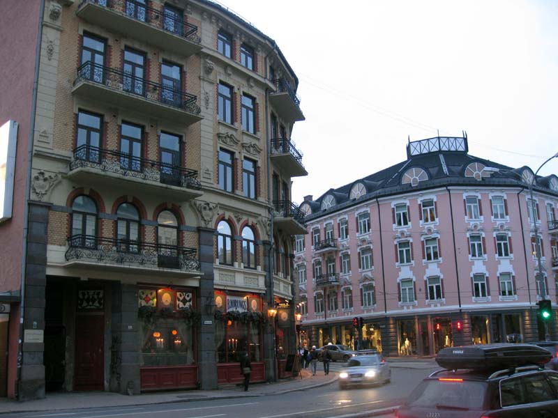 Cochs Pensjonat. This former boarding house is kitty corner from the royal palace, at the top of a hill looking down an avenue through downtown Oslo, a city with a population of 590,000. Cochs has character. Our room was comfortable and white, with plenty of space to store things. The bathroom floor was heated, a feature new to us that rapidly became a necessity as we got used to it in our other lodgings on this trip. Several notable Norwegians had stayed in our room, including Lars Saabye Christensen, author of The Half Brother (2001), a novel set in Oslo with references to Cochs Pensjonat.