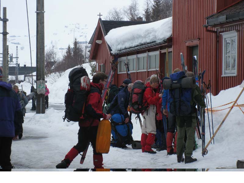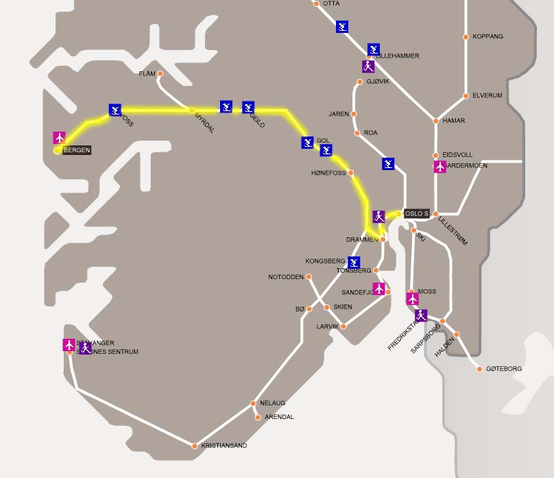 on this map, we passed through several skiing sites, and there were many skiers on the train.