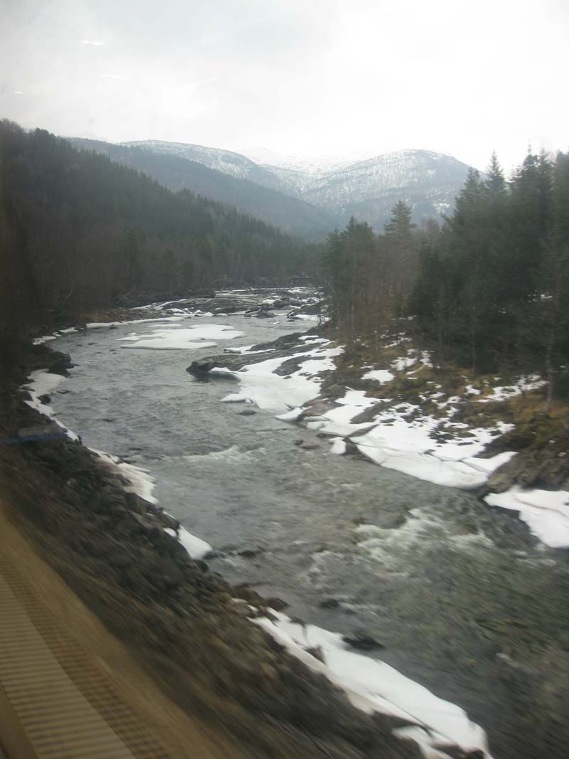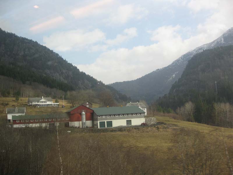 We took the train to Bergen, a 6 1/2 hour trip. We were in Komfort class, with free hot drinks, seats with power outlets, lots of wood, and good lighting. As you can see