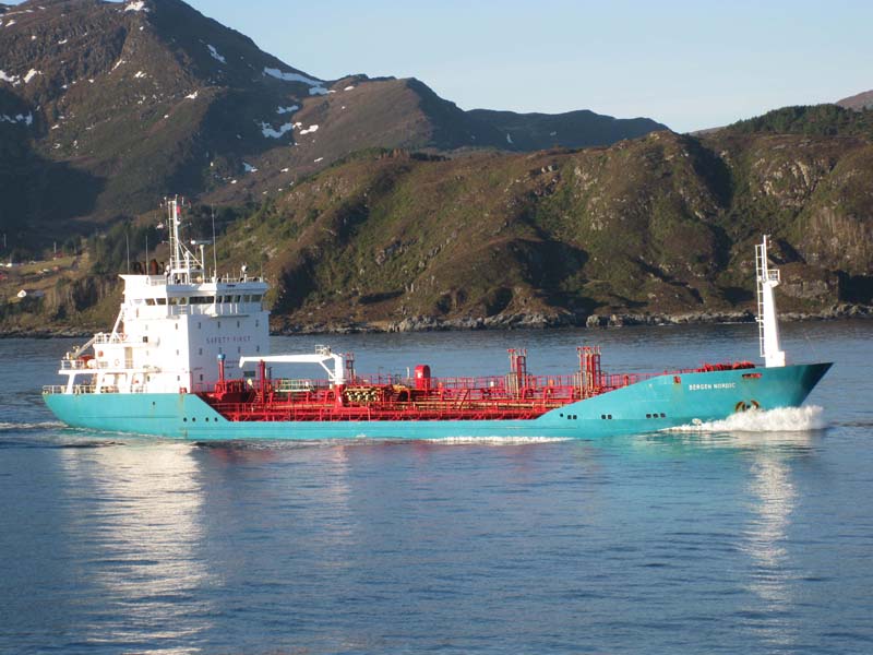 - Bridge of the Midnatsol We visited the bridge on a tour this morning, and learned several things about its navigation and maneuvering. The officer in the photo is the navigator; off to the left was the captain. Navigation is by GPS alone; there is no LORAN. The ship is guided most of the time by an autopilot. At some point entering and leaving a port the helm is taken by a human. The ship has no rudder; instead the two propellors in the stern can be rotated through 180 degrees. There are three bow thrusters on each side, for moving sideways toward and away from piers. Normally they use only two thrusters. When the wind or current is too strong for even three thrusters, they drop an anchor and use the capstan to manueuver away from a pier. There are planes to counter rolling, but not pitching. There was only a little rolling during short periods on our trip, and the weather was not bad. Mostly we were not in the North Sea, but were passing between islands.