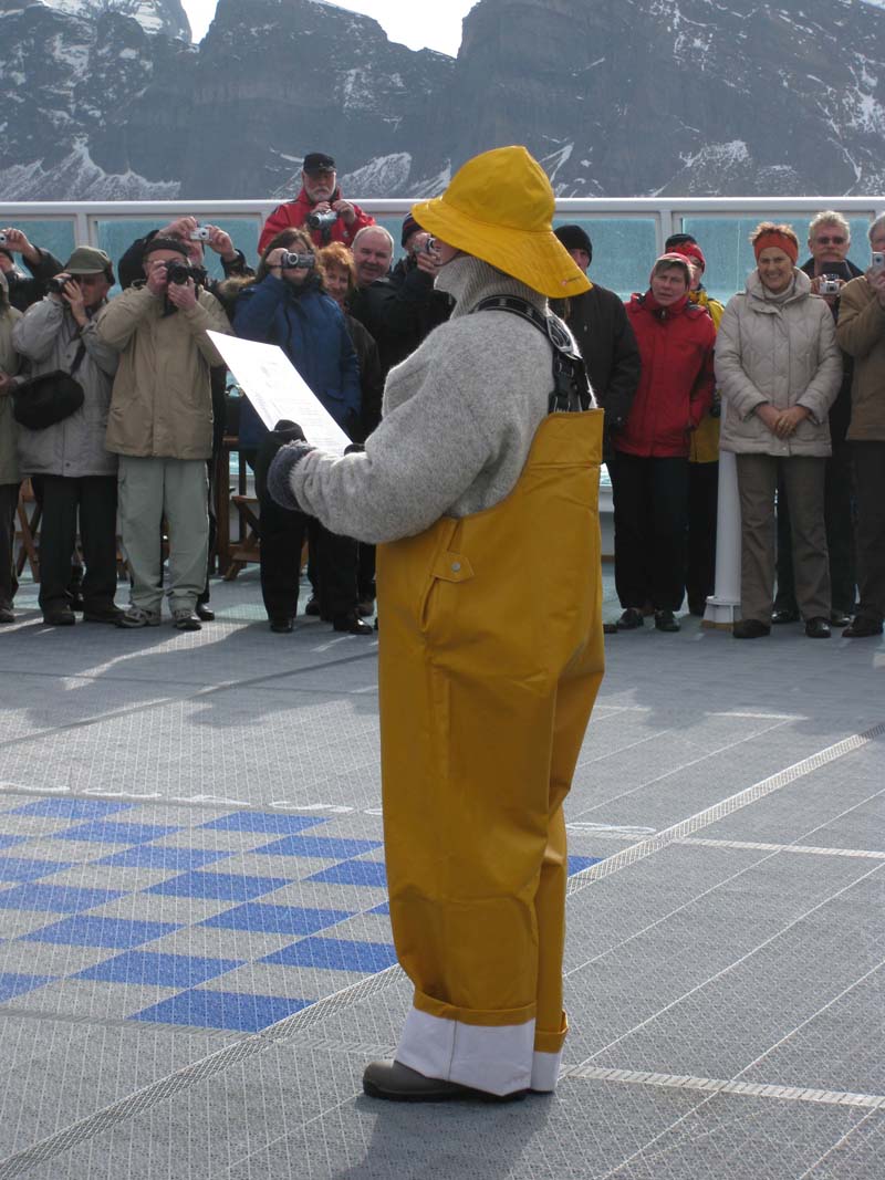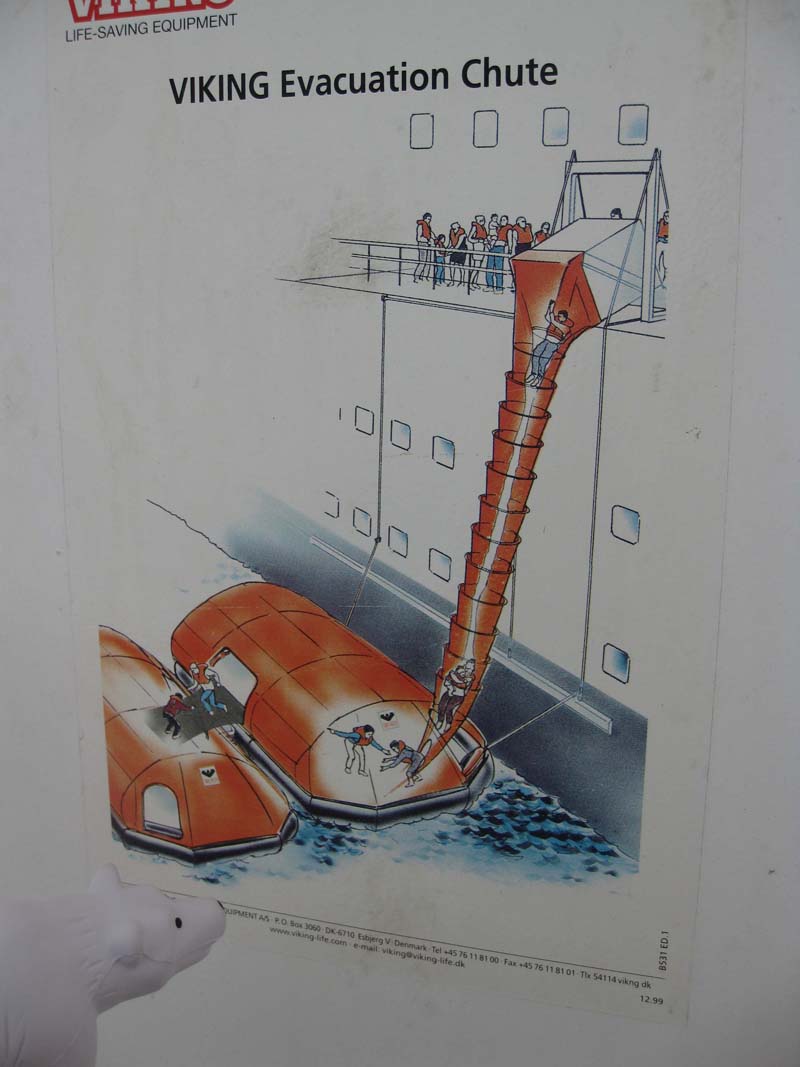 - Life chute instructions on the ship We would descend from the boat deck to the boat via a chute. Contrary to these instructions, we would be wearing survival suits.