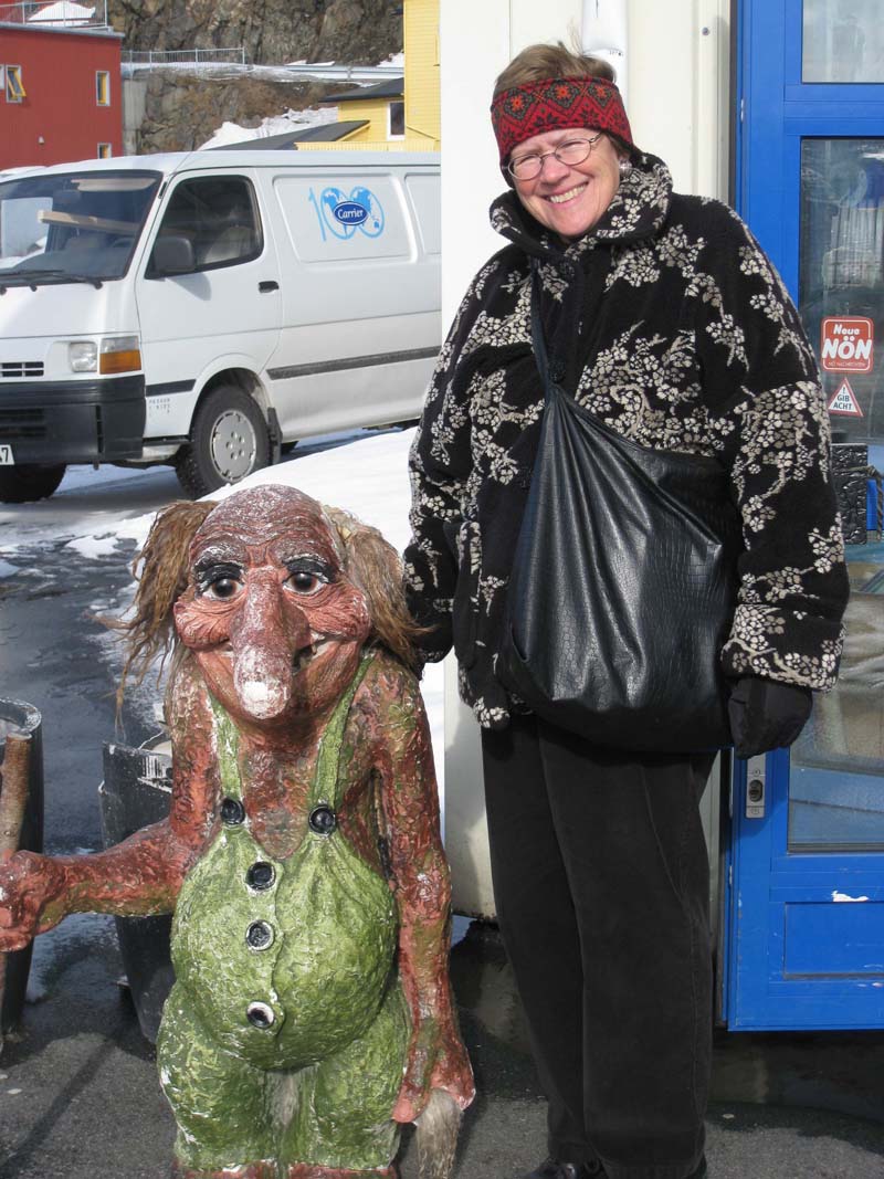 The airport at Alta was much nicer than I'd expect in an American town of that size (population 17,000). I put that down to the fact that a single government agency, Avinor, builds and runs all Norwegian airports. Central government aid may also account for the high quality of Norwegian museums. You wouldn't expect to find locally the specialized skills needed for exhibition design as good as we saw in museums in Trondheim (pop. 171,000), Ålesund (pop. 42,000), Bodø (pop. 46,000), Tromsø (pop. 67,000), and Kirkenes (pop. 7,000). We were also impressed by the services provided by the national airline, SAS. We have relatives that had tickets to Connecticut but were abandoned in Albany with no aid given by their American airline, responsible only to their shareholders. SAS paid for our lodging and meals in Kirkenes, the bus trip to Alta, the flight to Oslo, and our hotel and meals in Oslo. And then there is the national railroad system and the public transportation in Norway (pop. 4.9 million). The comparison to Amtrak and the Washington Metro is not to our advantage. It's very interesting to see the generally high level of competence and quality of public life in Scandianavian countries that are much smaller than the USA. Since we didn't see inside private homes, we can't compare our private quality of life to theirs. [Op-ed piece ends here]