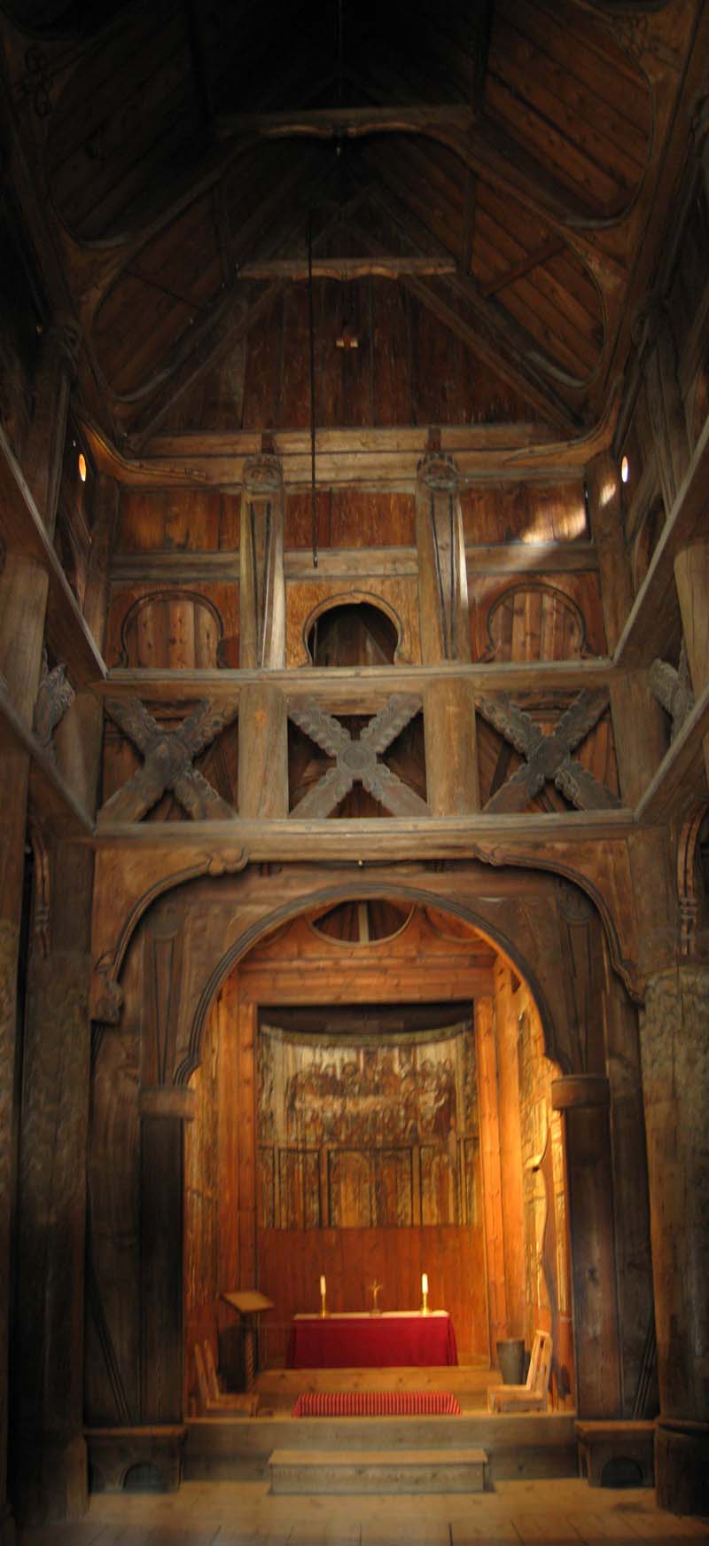 - The interior is also narrow. Stave churches could not accomodate many people, who stood, and were replaced in the 19c by larger, less interesting churches.