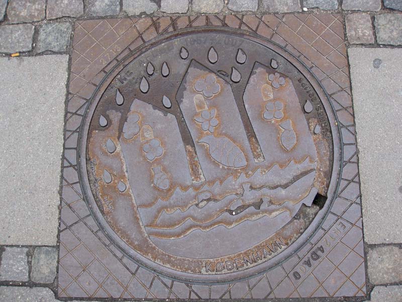 Copenhagen, 28 Apr In the center a small profile of a man with a top hat surrounded by "KØBENHAVNS ENERGI AFLØS" set in a field of art deco or Japanese style with a large open-mouthed fish at the top, a rat at the lower left, and below an indistinct figure radiating plumage or streamers. The ring the cover fits in is a narrow band with stylized waves or currents of water in which eight mermaids swim.