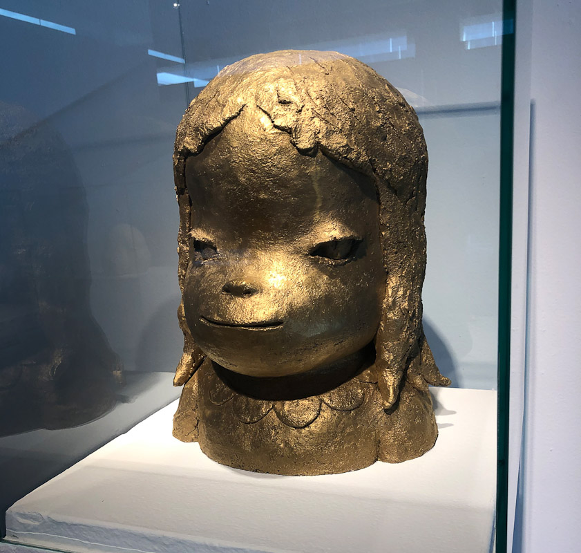 "Study for the Girl" by Yoshitome Nara. 2011. Stoneware, goldliquid, hand forming. 1230°C. Collection of the Museum of Contemporary Ceramic Art, Shigaraki, Japan.